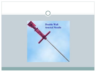 Interventional radiology uses minimally invasive techniques guided by imaging to diagnose and treat medical conditions. Procedures use small incisions or catheters inserted through blood vessels to access internal organs. The Seldinger technique is commonly used, involving insertion of a guidewire and catheter through a needle into the femoral artery. A variety of catheters and guidewires are used depending on the target vessel. Angiography involves injecting contrast dye to visualize vessels. Interventional radiology suites contain specialized equipment like large X-ray tubes and digital image receptors to facilitate complex image-guided procedures.