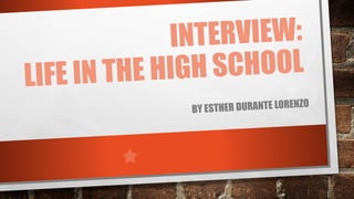 This document summarizes an interview with a student in their 2nd year of secondary school (2oESO). When asked about the transition from primary to secondary school, the student said some subjects like history and biology were harder. Their happiest moment was finding 10€ in the playground, while failing a retake exam despite studying hard was the most painful. Their most memorable moment was the first time they cheated on an exam due to nerves.