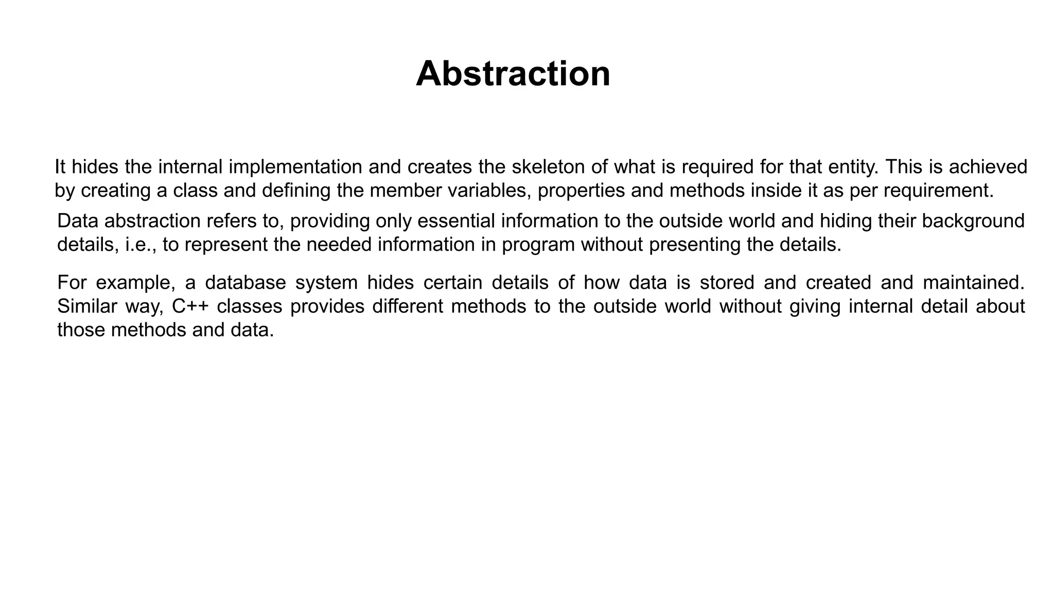Object-oriented programming (OOP) is a programming paradigm based on the concept of objects that contain data and code. The four pillars of OOP are data abstraction, encapsulation, inheritance, and polymorphism. Data abstraction hides internal details and provides essential information. Encapsulation bundles data with the methods that operate on that data, protecting data within a class. Inheritance allows new classes to inherit properties from existing classes. Polymorphism gives the same functions different meanings depending on usage.