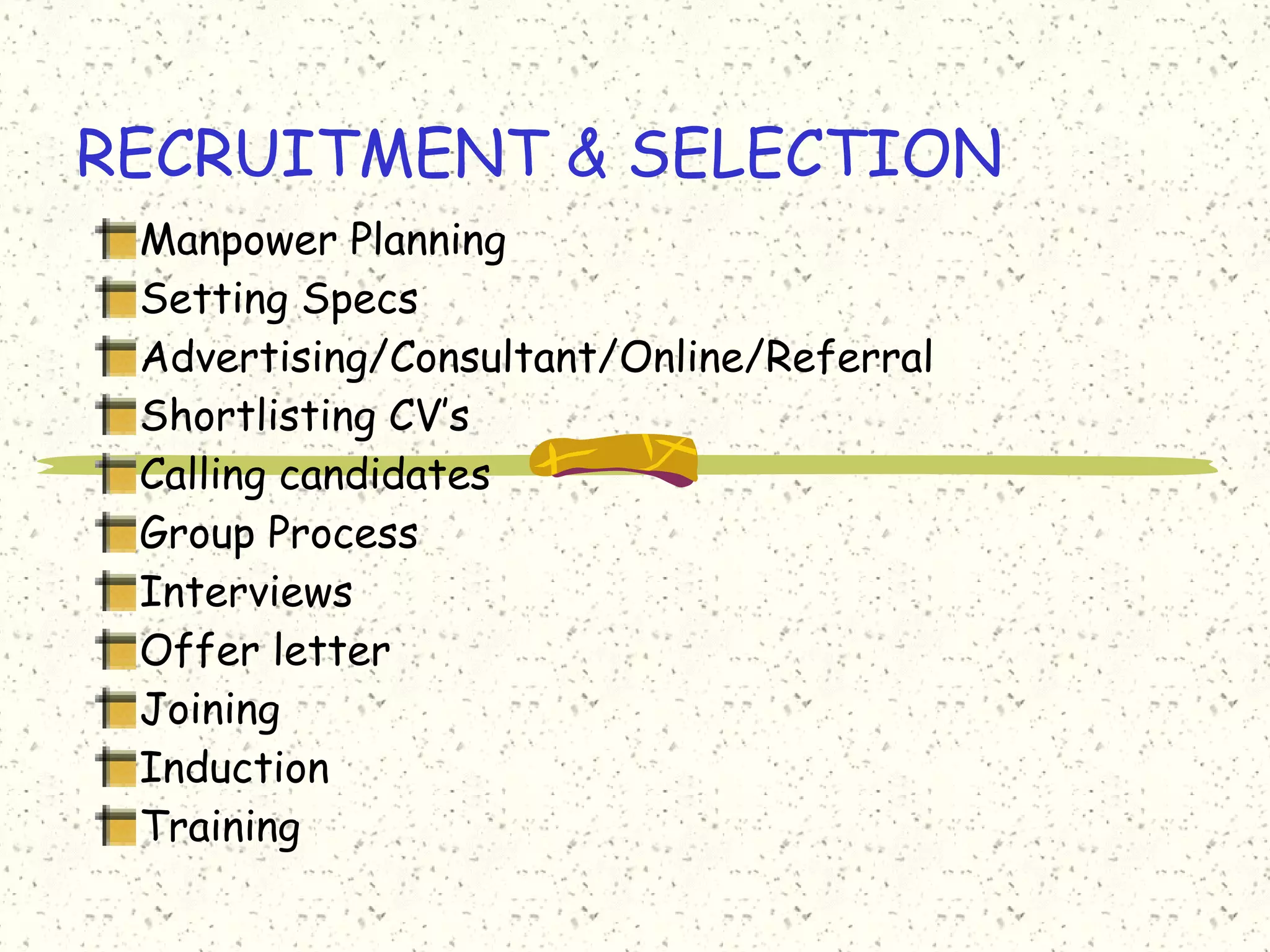 This document provides an overview of the recruitment and selection process, including manpower planning, setting job specifications, advertising positions, shortlisting candidates, conducting interviews and assessments, making offers, and onboarding new hires. It discusses different types of interviews, such as phone, one-on-one, panel, and video interviews. It offers tips for interview preparation including researching the organization and job, analyzing one's skills and qualifications, and developing an interview file. The document provides guidance on interview etiquette, body language, common interview questions, strategies for answering questions, and following up after the interview.