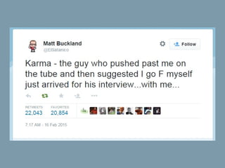 This document summarizes an interview techniques workshop. The workshop objectives are to outline interview principles, explore employer expectations, share interview experiences, assess confidence levels, and practice interview questions. The content includes preparation tips, interview formats, employer perspectives, behaviors, and common question types. Participants will learn about research, examples, the STAR technique and have an opportunity to practice interviews. Key tips are to prepare thoroughly, know yourself and the organization, ask questions, and maintain a positive attitude.
