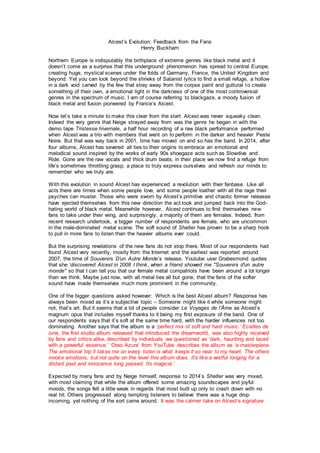 - Alcest began as a raw black metal project in France but has since evolved their sound to a melodic dream pop/shoegaze style inspired by bands like Slowdive and Ride.