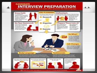 This document outlines the format and tips for a mock interview workshop on job and interview skills. The workshop will include 10 short mock interviews of 2-3 questions each, with feedback sessions after each interview and at the end. Participants will practice answering common interview questions and receive recordings of their interviews. The document also provides research, preparation, and execution tips for successful interviews, including researching the opportunity thoroughly, rehearsing answers, dressing professionally, arriving early, having good body language, asking questions, and following up.