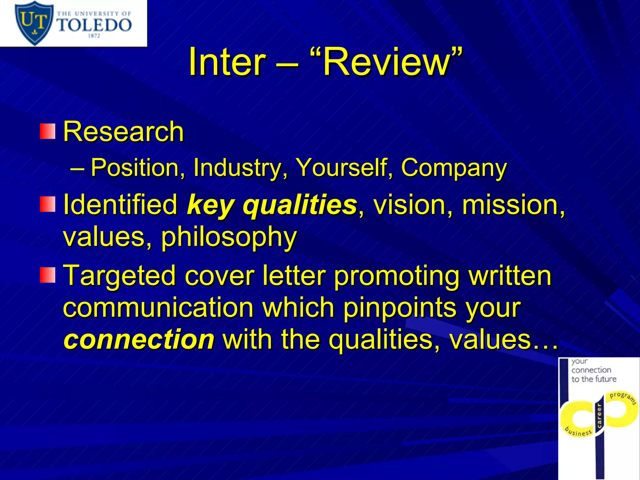 - It discusses proper interview attire, common interview question types, using the STAR technique to answer behavioral questions, researching companies and one's own interests/skills, and following up with a thank you note after the interview.