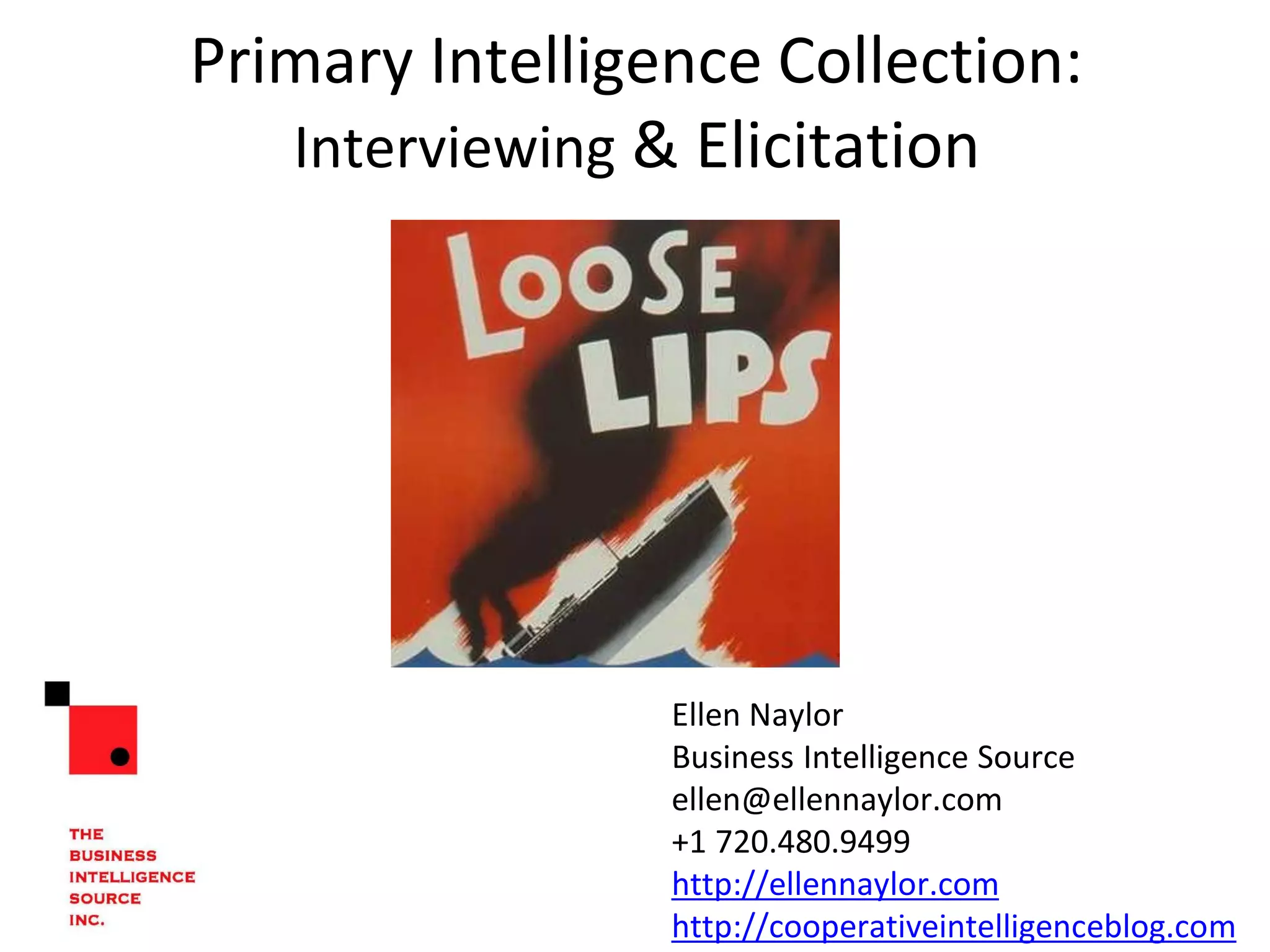 The document provides insights on effective interviewing and elicitation techniques for intelligence collection, emphasizing the importance of building rapport with targets and formulating motivating questions. It discusses various strategies for communication, including the use of open-ended questions, active listening, and recognizing visual cues that suggest emotional responses. Additionally, it highlights the role of psychological insights and conversational flow in gathering information without raising concerns among the interviewees.