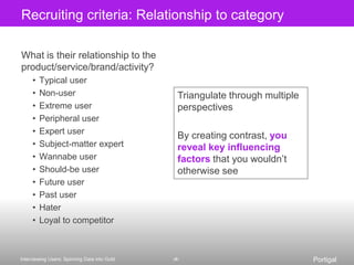 The document outlines a comprehensive workshop schedule focused on research best practices, emphasizing the importance of ethnographic interviews, user-centered design, and effective participant recruiting. It details various methodologies for conducting interviews, including preparation, question design, and participant engagement strategies to uncover deeper insights. The document also highlights the significance of cultural context in understanding user behavior and motivations to inform product development.