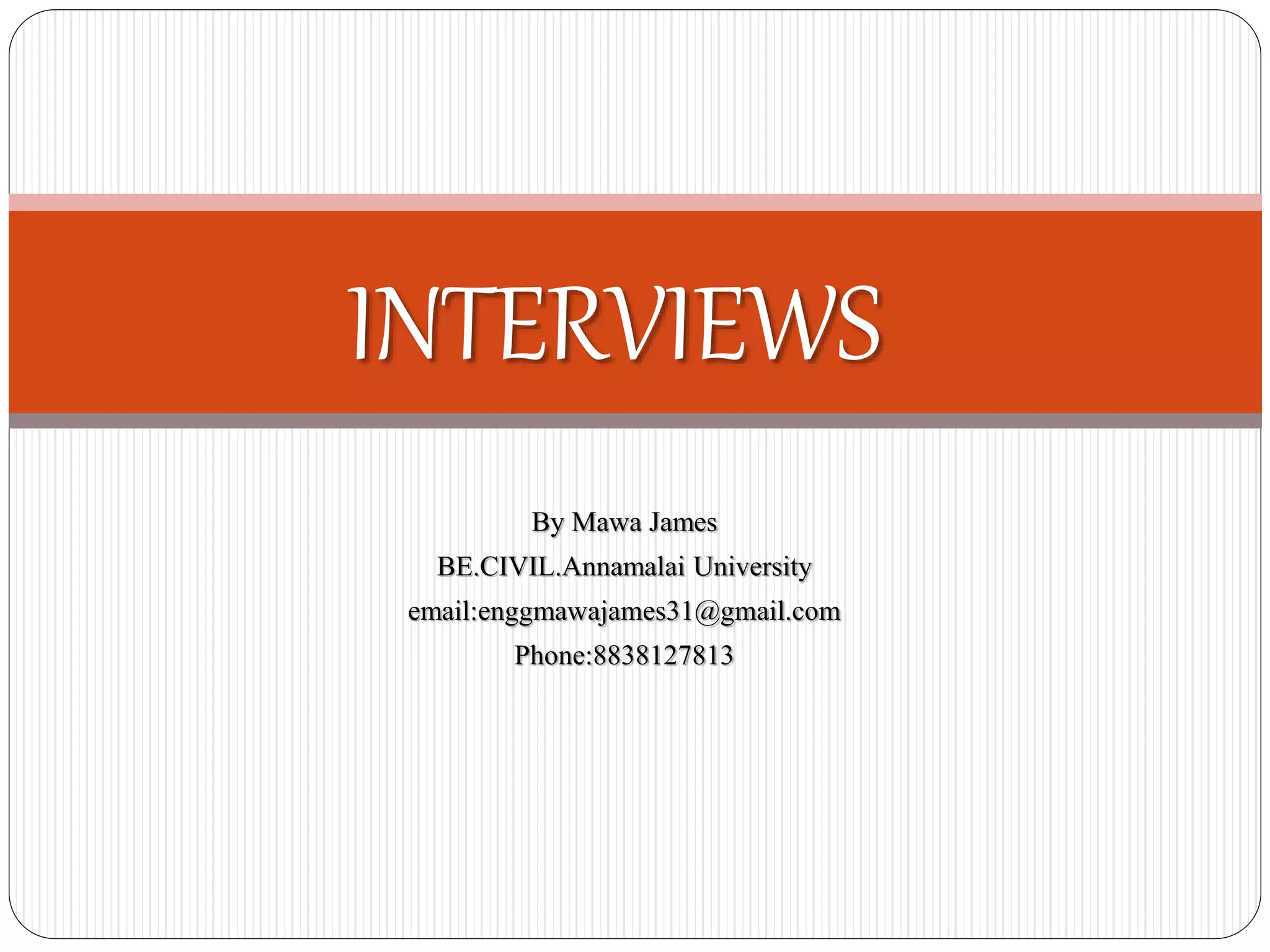 This document provides tips for preparing for and succeeding in interviews. It discusses preparing answers to common question types like competency, strength, and "curve ball" questions using the STAR model. On the interview day, it recommends arriving early, being polite to others, limiting phone and social media use, and having questions prepared for the interviewer. After the interview, it suggests following up with a thank you email to reinforce your interest in the position. Overall, the document stresses the importance of research, preparation, practice, and maintaining composure during the interview process.