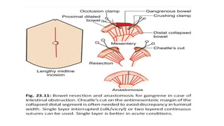 • if colour becomes normal with peristalsis then bowel is viable.