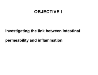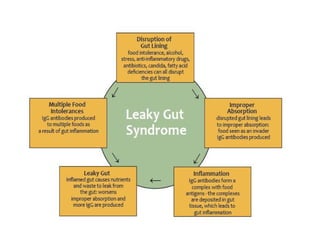 The document discusses the relationship between compromised intestinal permeability and inflammation, highlighting the prevalence of inflammatory bowel diseases (IBD) in the U.S. and the important role of tight junction proteins in gut health. It reviews literature on the mechanisms of intestinal permeability and the factors contributing to increased permeability, along with diagnostic protocols and natural interventions for treating related disorders. The document concludes by emphasizing evidence-based dietary and supplemental approaches to restore gut health and reduce inflammation.