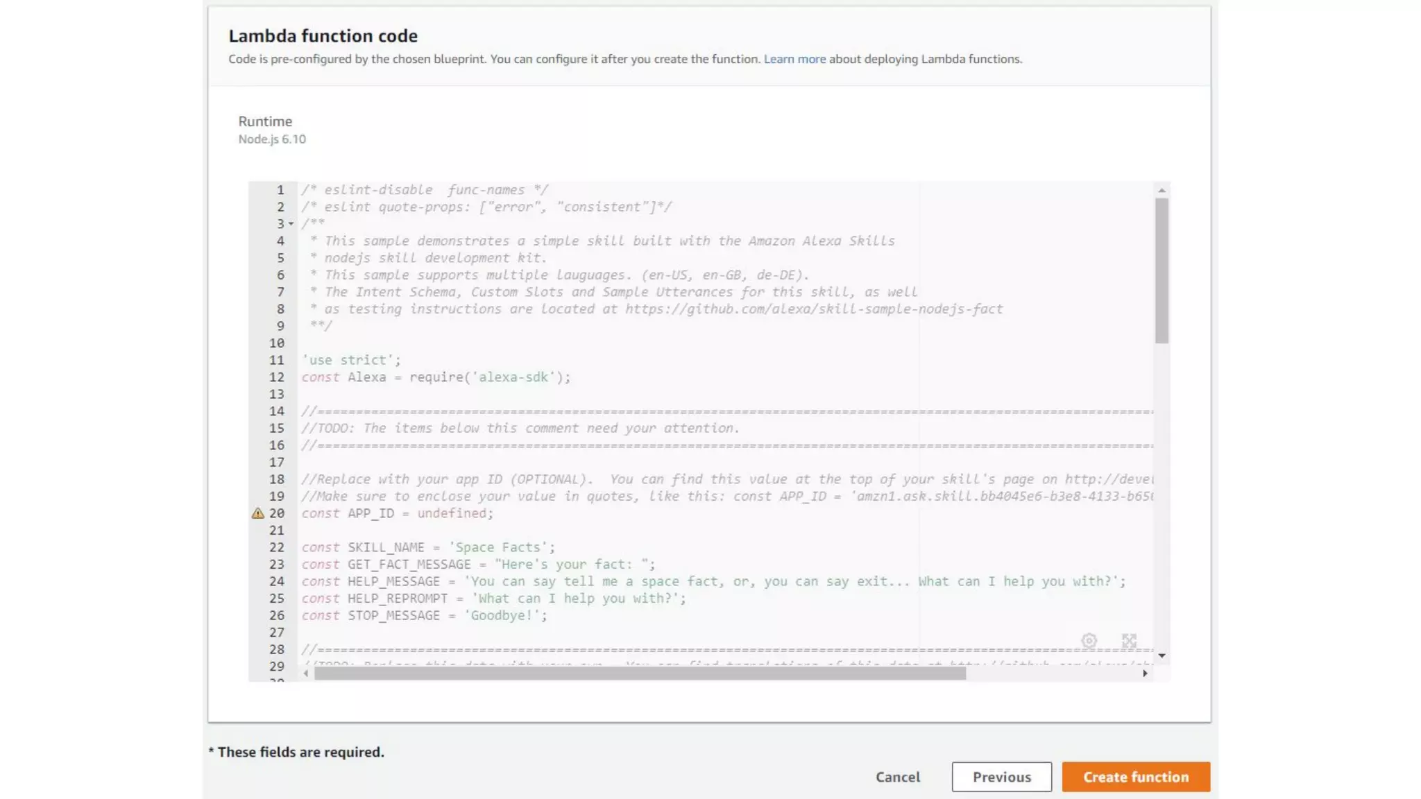 This document provides information on building skills for Alexa using APIs and ColdBox frameworks. It discusses setting up Amazon developer accounts and AWS services accounts. It also covers creating Lambda functions in Node.js to call APIs from Alexa skills and building ColdBox REST APIs to interface with Alexa skills. The document includes code snippets for sample Lambda functions and ColdBox handlers to integrate with Alexa skills.