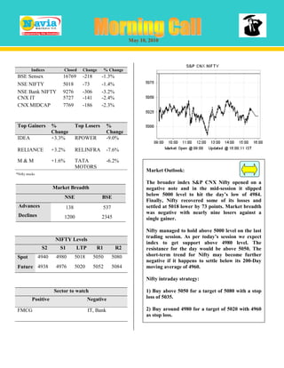 - Top gainers included IDEA (+3.3%) and RELIANCE (+3.2%), while top losers were RPOWER (-9%) and RELINFRA (-7.6%).