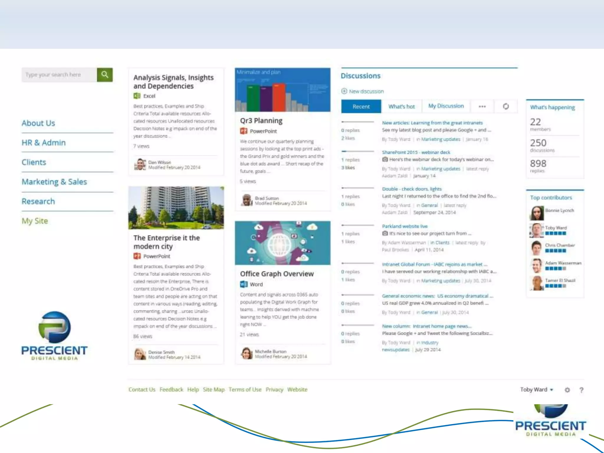 The document discusses various intranet case studies, particularly focusing on Unisys, IBM, BT, and Cisco, highlighting their digital strategies and collaborative tools. It emphasizes the integration of social collaboration tools into company culture, leading to improved employee engagement and measurable results, including significant cost savings and enhanced productivity. The document also outlines the importance of executive support and effective governance in the success of intranet implementations.