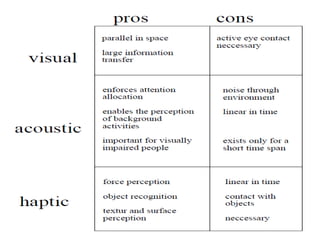This document provides an introduction to human-computer interaction (HCI). It defines HCI as a discipline concerned with studying, designing, building, and implementing interactive computing systems for human use, with a focus on usability. The document outlines various perspectives in HCI including sociology, anthropology, ergonomics, psychology, and linguistics. It also defines HCI and lists 8 guidelines for creating good HCI, such as consistency, informative feedback, and reducing memory load. The importance of good interfaces is discussed, noting they can make or break a product's acceptance. Finally, some principles and theories of user-centered design are introduced.