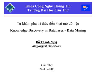 Tài liệu thảo luận về sự cần thiết và ứng dụng của Khám Phá Tri Thức từ Cơ Sở Dữ Liệu (KDD) và Khai Thác Dữ Liệu (DM). Nó nêu bật sự bùng nổ dữ liệu trong các lĩnh vực như khoa học, thương mại và an ninh, đồng thời trình bày quy trình KDD, bao gồm tiền xử lý, khai thác và đánh giá kết quả. Cuối cùng, tài liệu nhấn mạnh tầm quan trọng của KDD và DM trong việc tìm kiếm tri thức từ các khối lượng dữ liệu lớn.