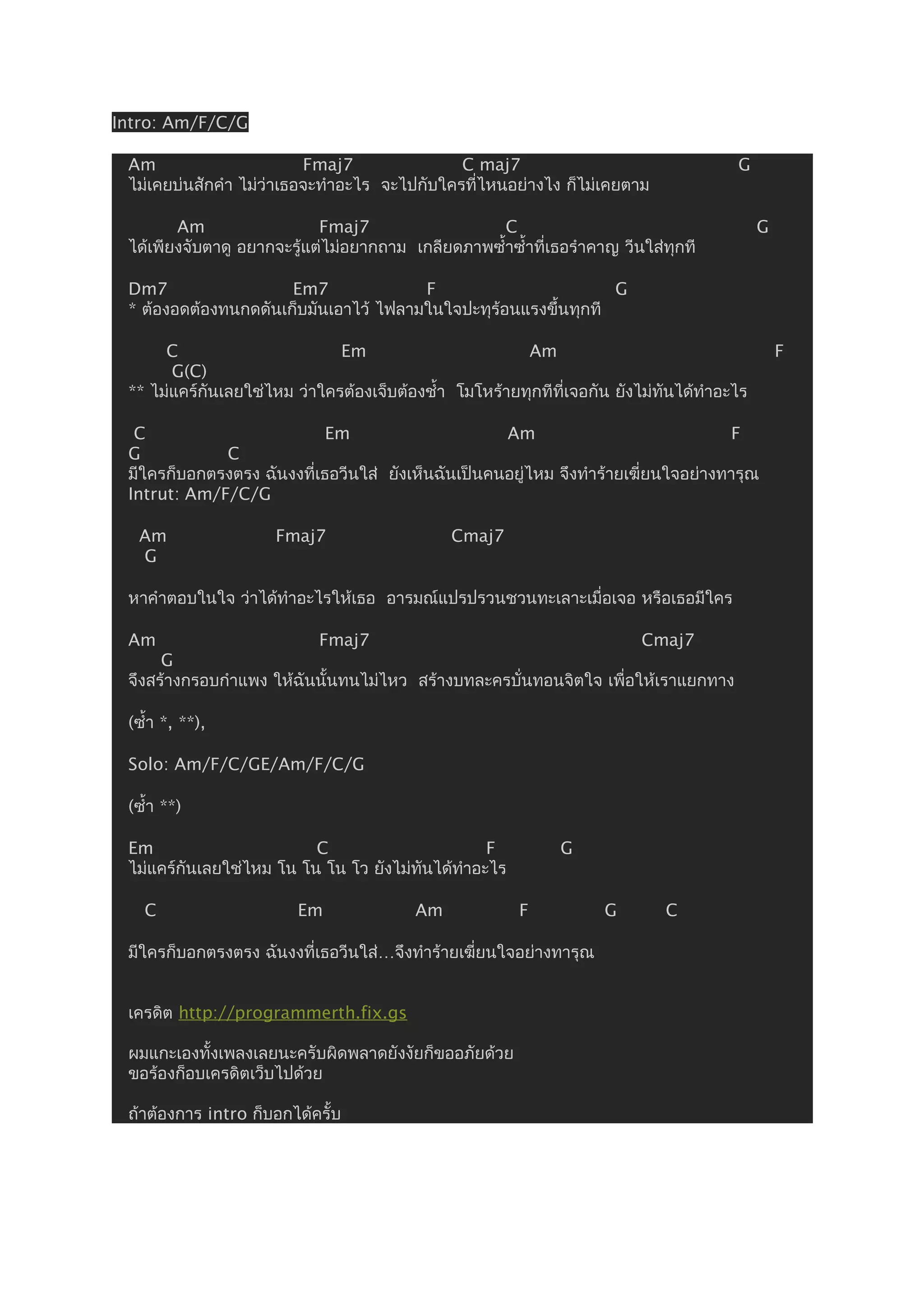 ผมแกะเองทั้งเพลงเลยนะครับผิดพลำดยังงัยก็ขออภัยด้วย