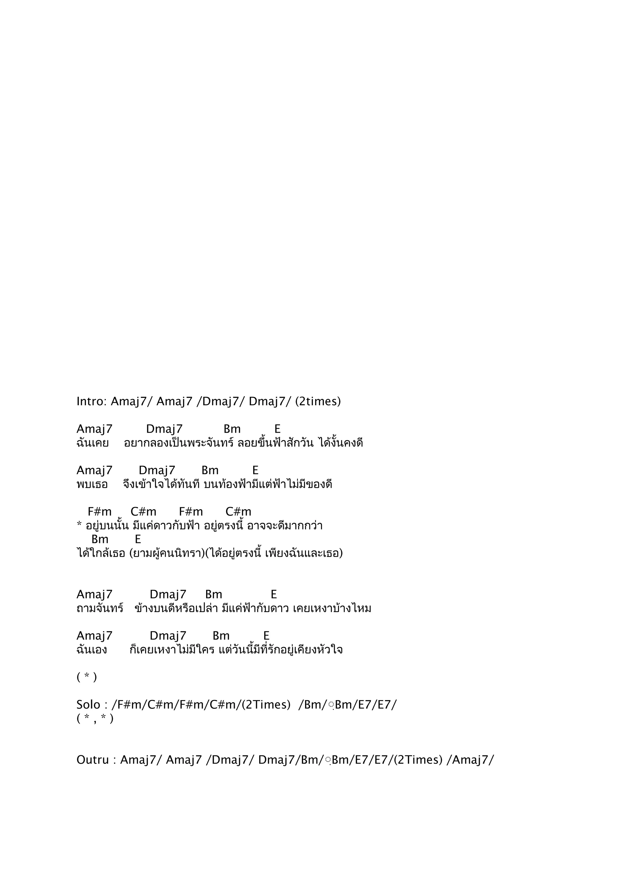 Outru : Amaj7/ Amaj7 /Dmaj7/ Dmaj7/Bm/ฺฺBm/E7/E7/(2Times) /Amaj7/