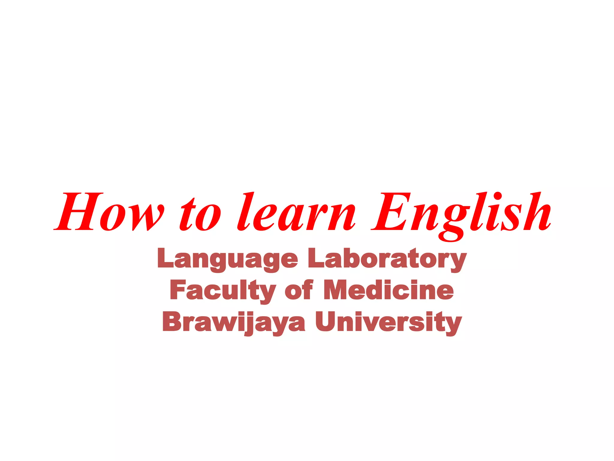 The document provides information about how to effectively learn English. It discusses the different language skills of listening, speaking, reading and writing. It also shares facts about the widespread use of English internationally. Some key points made include that English has official status in 75 countries, is spoken by over 2 billion people, and is used for 80% of internet communication and electronically stored information. It emphasizes the importance of practicing speaking English, not being afraid to make mistakes, believing in yourself, and setting goals in order to learn the language successfully.