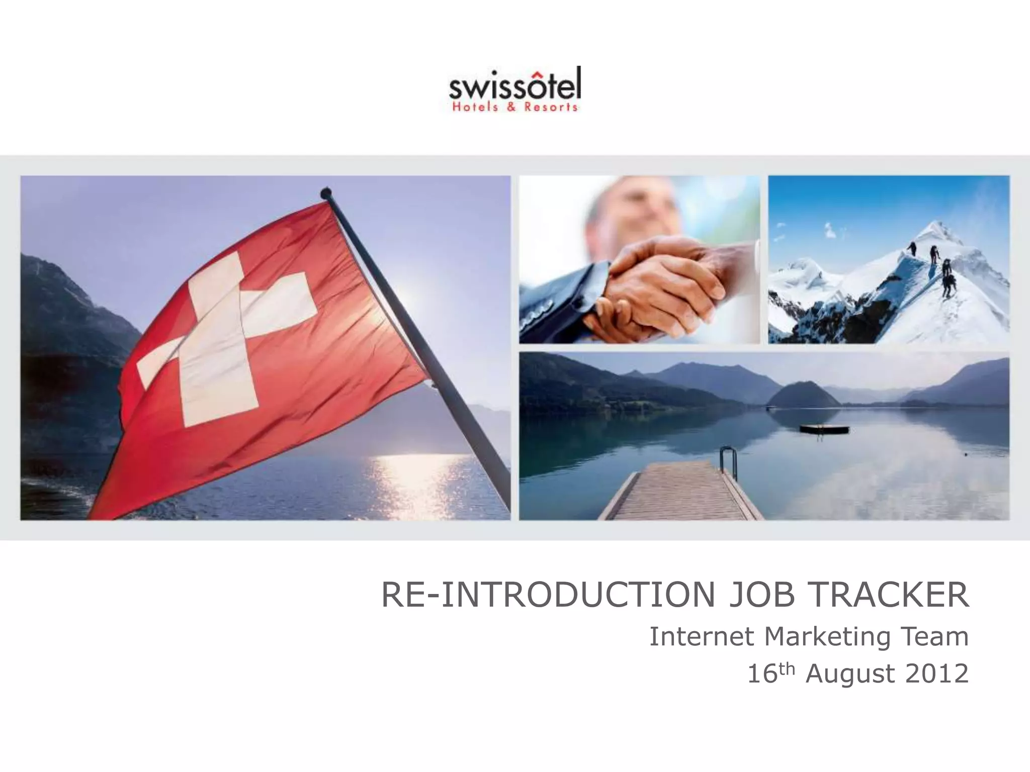 This document provides an overview and instructions for using a new job tracking website. The website allows users to submit new job requests, view existing jobs by status, and create or edit pages for accommodations, promotions, and dining outlets. Each new page is customized through template forms, allowing content such as images, text, and features to be added. Users can log in using a provided login ID and password to access these page creation and job tracking functions.