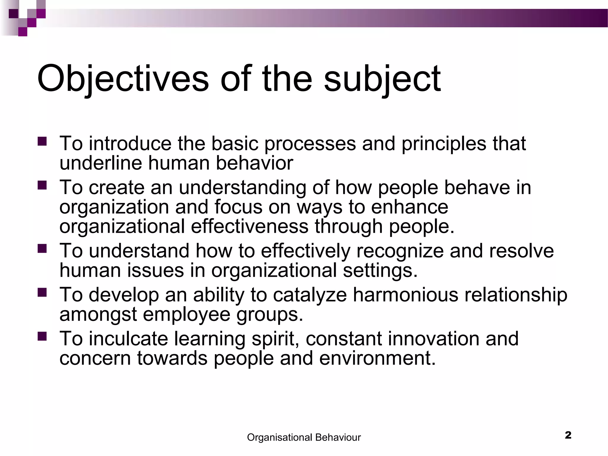 The document outlines the principles and objectives of organizational behavior, emphasizing the understanding and application of human behavior in organizational settings. It covers essential topics such as perception, motivation, personality, and the role of managers, while also discussing the historical evolution and various models of organizational behavior. Additionally, it highlights the importance of socialization, job satisfaction, and the impact of personality traits on workplace dynamics.