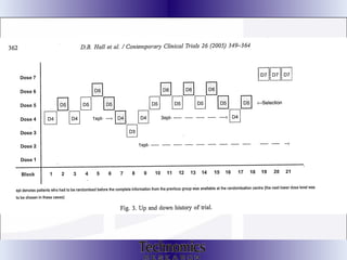 The document summarizes adaptive trial designs, where accumulating data is used to modify aspects of an ongoing study without undermining its validity. It discusses sample size re-estimation, group sequential designs, adaptive randomization, and adaptive dose escalation to make trials more efficient and ethical. Seamless phase II/III designs that combine learning and confirmation phases into one protocol are also described. The FDA accepts some adaptive designs for approval but is cautious of other novel approaches. Case studies demonstrate how adaptations can substantially reduce sample sizes.