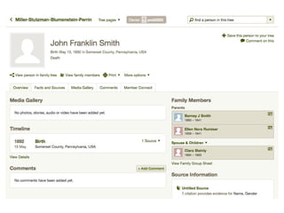 This document provides an overview of the genealogical records and services available through Ancestry.com. It describes Ancestry.com as a for-profit company that offers over 30,000 genealogical databases including census, military, immigration, and vital records. It also lists some of the key record collections and features available, such as family trees, charts, learning resources, and search capabilities. The document notes that Ancestry.com has over 12 billion records and 2 million subscribers but is retiring some products in 2014. It highlights strategies for effective searching and differences between Ancestry.com and the Ancestry Library Edition.