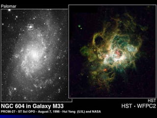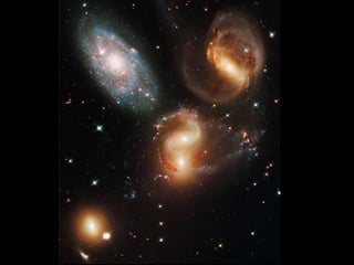 The document discusses upcoming NASA space shuttle missions, an asteroid passing close to Earth, and provides an introduction to astronomy topics including the Big Bang theory, formation of stars and galaxies, light years, types of galaxies, solar systems, and milestones in space exploration. Key information includes the launch dates and durations of the final two space shuttle missions, an asteroid passing within 45,000 km of Earth on October 5, and an overview of how the universe formed and evolved according to the current scientific understanding.