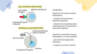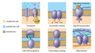 This document discusses why biochemistry is important for physical therapy students. It notes that biochemistry provides an understanding of the physiological processes underlying human movement and function, as biochemistry studies the chemical processes in living organisms. It gives several reasons why biochemistry is key, such as understanding biomolecule structure/function, metabolism, energy production, pharmacology, and molecular bases of disease. The document then provides an overview of basic biochemistry topics like the cell, cell membrane structure and function, types of membrane proteins and lipids, cell signaling pathways, and references for further learning.