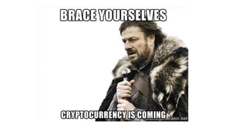 The document discusses the innovation of Bitcoin and blockchain technology. It begins by explaining how Bitcoin allows for secure digital transfers of property online without the need for trusted intermediaries. It then covers the basics of how the Bitcoin network and blockchain works at a high level, including how addresses, private keys, wallets, and mining process transactions and create new blocks in the ledger. It emphasizes that the decentralized nature of the blockchain makes it highly secure and not able to be controlled by any single entity. In closing, it suggests that blockchain technology may allow for innovative new applications and improvements to financial and legal systems.