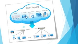 Cloud computing allows users to store and access data and applications over the internet instead of local hard drives. It includes various service models such as SaaS, PaaS, and IaaS, with advantages like cost-effectiveness and efficiency, but also presents risks regarding security and privacy. The document outlines the structure of cloud computing, including its front-end and back-end components.