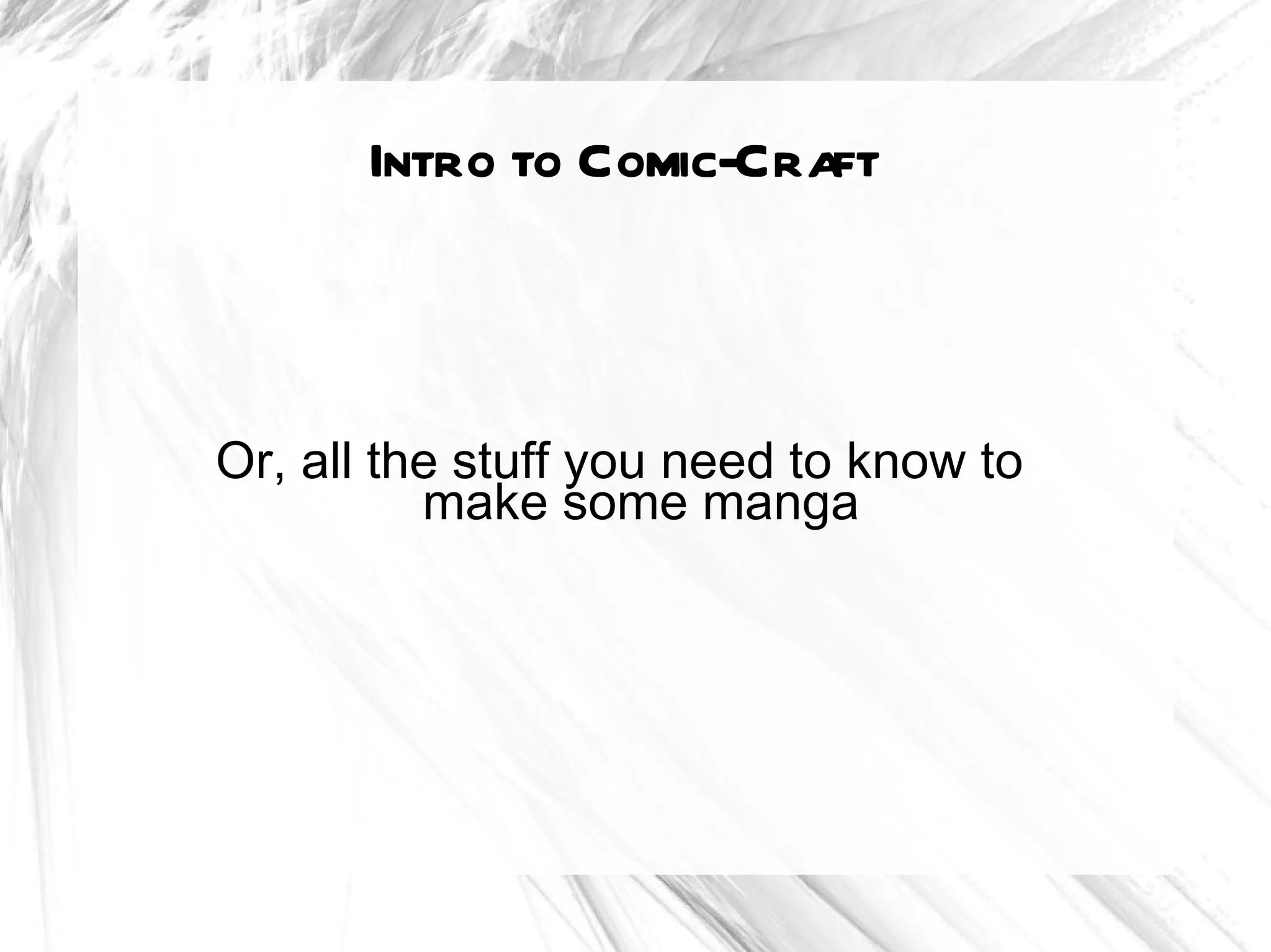 The document serves as a comprehensive introduction to creating manga, detailing the essential tools and materials needed, including various types of paper, pencils, inking tools, and computer programs. It emphasizes starting with simple tools that suit individual preferences and gradually expanding one's toolkit. Overall, it encourages aspiring manga artists to explore and find what works best for them.