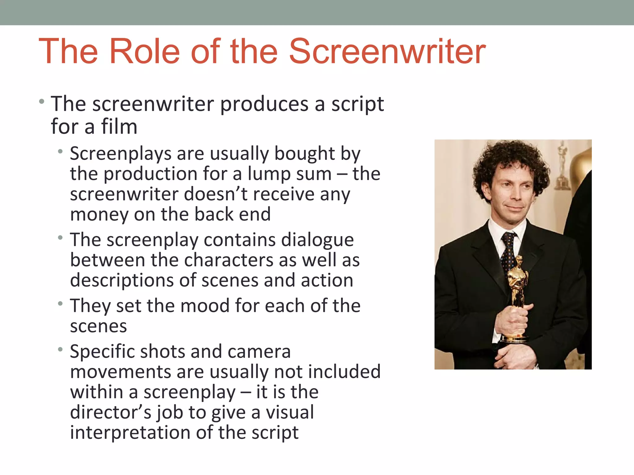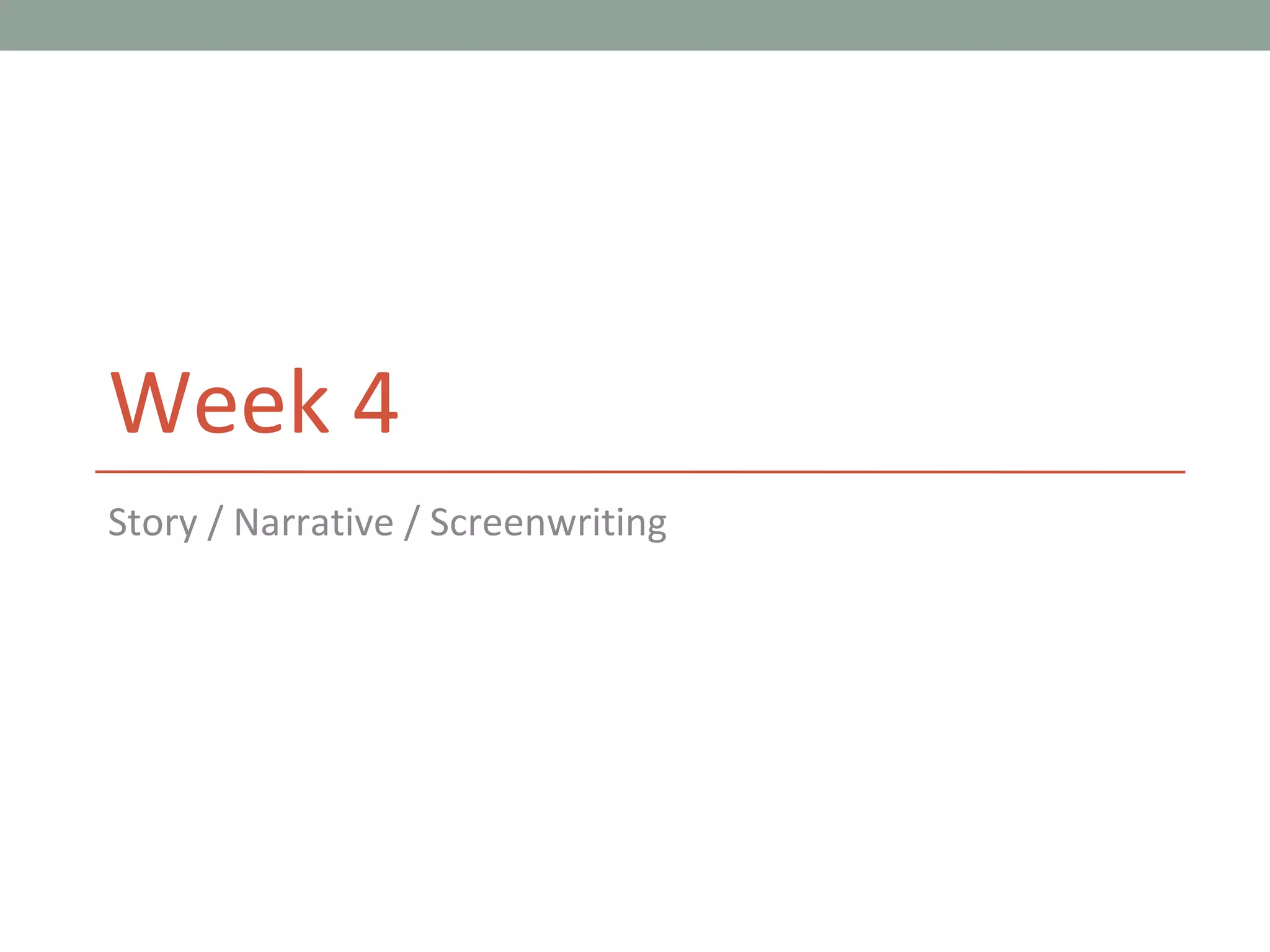 The document outlines the role of the screenwriter, emphasizing the creation of screenplays that combine dialogue and scene descriptions while distinguishing screenwriting from other writing forms like playwriting and novels. It also discusses the differences between story and plot, introduces classical narrative components, and explains the hero's journey as a storytelling framework. Various narrative structures, including realistic, classical, and formal, as well as alternative forms like mosaic and non-linear narratives, are also described.
