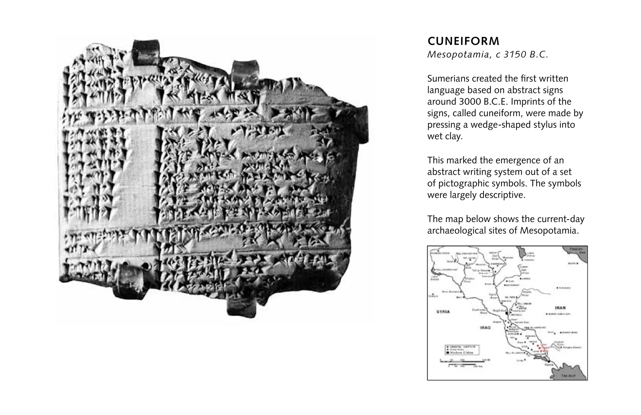 The document provides a comprehensive overview of the history and evolution of writing systems, beginning with the creation of cuneiform by the Sumerians around 3000 B.C. and culminating in the development of movable type by Johannes Gutenberg in the 15th century. It discusses various alphabets, including the Phoenician and Greek alphabets, and explores the transformation of typefaces through the ages, including innovations in printing technology and type classification systems. Additionally, it addresses specific typographical terms and concepts that are fundamental to understanding type design.