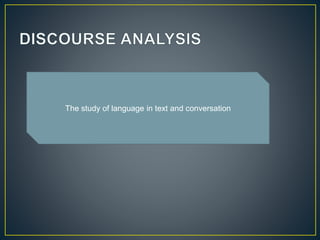 The document explores the relationship between language interpretation and knowledge, emphasizing the importance of cohesion and coherence within texts. It discusses various aspects of conversation, including turn-taking, conversational maxims, and the role of context in understanding speech. Additionally, it defines key concepts such as implicature, schemas, and scripts that influence how we understand and create meaning in communication.