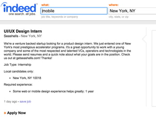 The document discusses mobile user experience (UX) design, outlining key principles and techniques for creating effective mobile applications. It emphasizes the importance of understanding user interaction, design challenges, and provides resources for further learning, including tools and influential people in the field. Additionally, it highlights the unique considerations and gestures relevant to mobile UX compared to traditional designs.