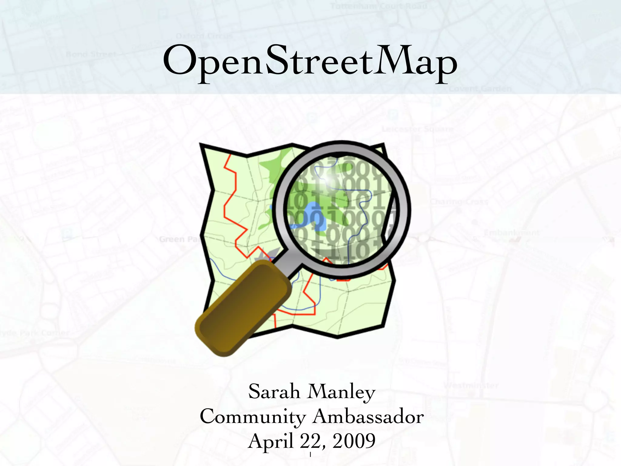 The document discusses the significance of maps as visual tools for sharing information and their accessibility challenges, highlighting issues like cost and outdated data. OpenStreetMap (OSM) is presented as an alternative that offers free and open geographic data, encouraging community contributions for up-to-date mapping. The document also outlines how individuals can get involved with OSM and its licensing through Creative Commons.