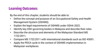 • Explain the legal requirements of OSHMS under OSHA 2022.