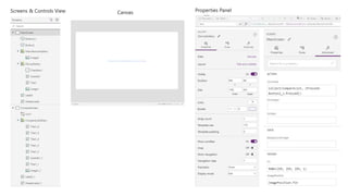 PowerApps provides two main approaches to building business applications without code: Canvas Apps and Model-Driven Apps. Canvas Apps start with the user experience, allowing pixel-perfect control, while Model-Driven Apps start with the data model and relationships to automatically generate apps. Both approaches provide visual designers to easily create forms, views, workflows and more. PowerApps supports building both web and mobile apps that can integrate with hundreds of data sources and Microsoft services like Dynamics 365, Office 365 and Azure.