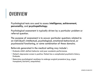 Altmaier, E.M., &Tallman, B.A. (2013). Psychological assessment in medical settings. In APA