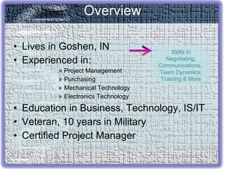 Ron K Craw lives in Goshen, Indiana and has over 30 years of experience in project management, purchasing, engineering, and the military. He has a background in business, technology and information systems. Some of his core strengths include communication, teamwork, training, and negotiation. He is dedicated to his family and church.