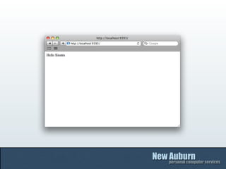 This document provides an introduction to the Ruby programming language from Brian Hogan. It discusses Hogan's background as a designer who grew to love programming after learning Ruby. It provides overviews of common Ruby concepts like objects, variables, classes and testing. It also demonstrates examples of Ruby code and highlights libraries like Haml, Sass, Sinatra and Cucumber. The overall message is that Ruby can make developers productive and happy. Resources are included for trying Ruby online.