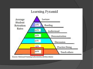 The document describes The Andragogy Modified Project (AMP), which focuses on independent and small group learning rather than traditional teacher-centered pedagogy. The AMP model involves three aspects: 1) small study groups where students from different majors meet to discuss topics of their choosing, 2) weekly group meetings where students give presentations on topics they are passionate about, and 3) independent learning where students pursue self-directed learning on any topic at any time. The goal of the AMP is to encourage lifelong learning by teaching students to take ownership of their education.