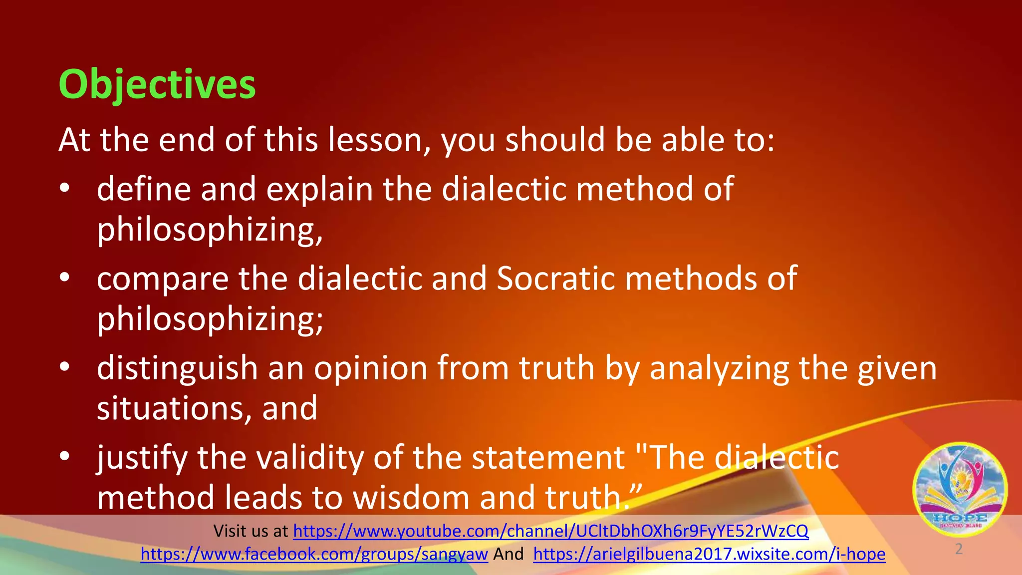 Chapter 2 discusses the dialectic method of philosophizing, emphasizing its role in arriving at truth through dialogue and the exchange of contradicting arguments. It distinguishes between opinion and truth, highlighting how the dialectic process leads to wisdom. The chapter also compares the dialectic method with the Socratic method and suggests practical applications and exercises for understanding these philosophical concepts.