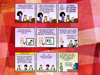 The document provides an overview of user experience (UX) design. It defines UX as a person's emotions and attitudes about using a product or service. UX design aims to enhance user satisfaction by improving usability, accessibility, and the overall user experience. The document recommends that developers learn basic design principles and work with UX designers. It also stresses the importance of accessibility and following guidelines like WCAG to ensure all users can access websites.