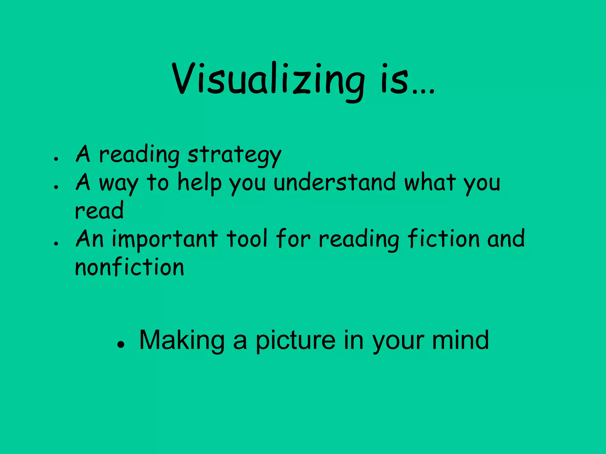 Visualizing is a reading strategy that helps readers create mental images based on text, enhancing comprehension of both fiction and nonfiction. It relies on using textual clues and personal background knowledge, leading to unique interpretations among readers. Effective visualization not only makes reading more engaging but also aids in understanding the narrative by prompting careful reading and active processing of the text.