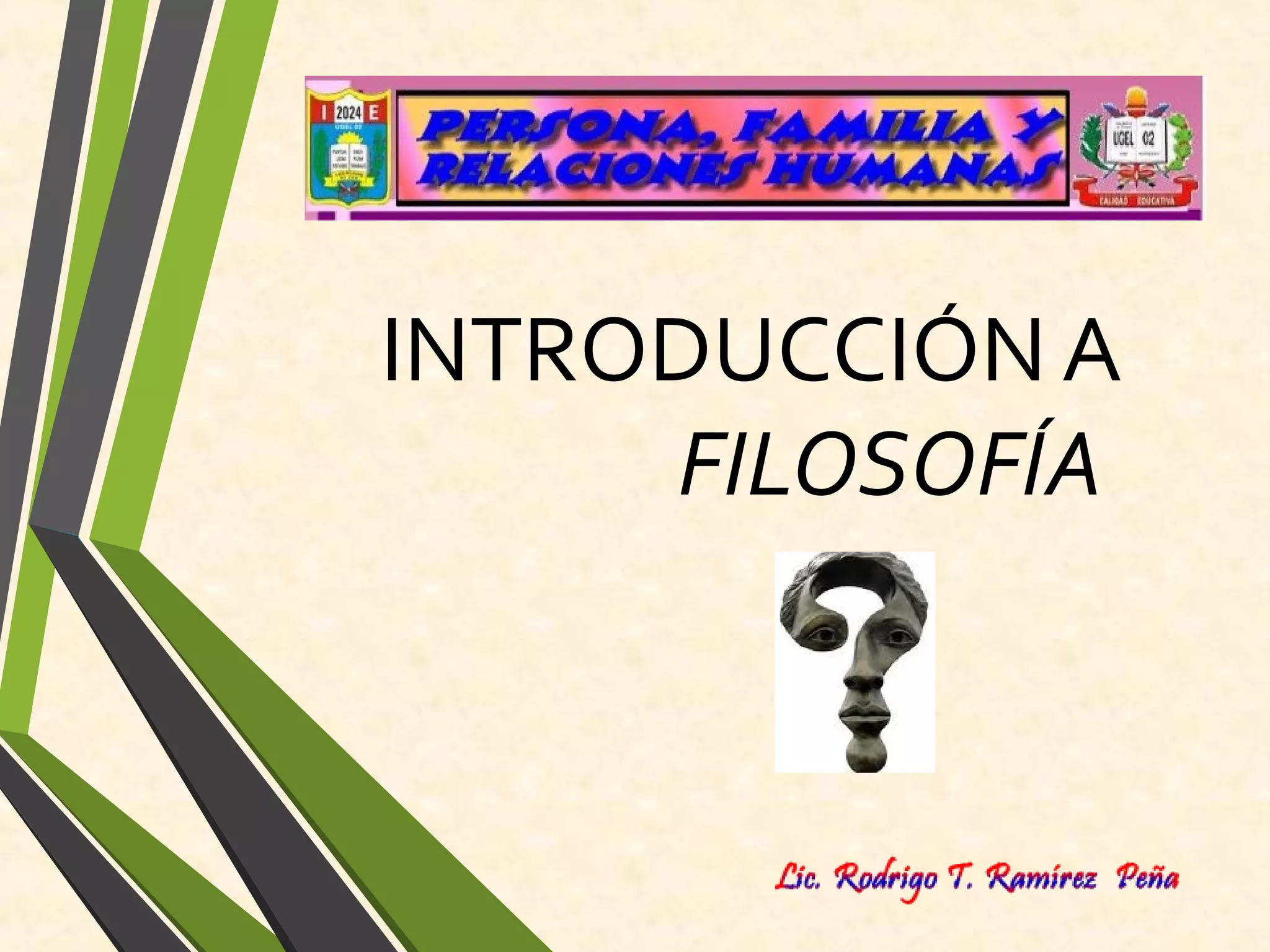 Este documento introduce el tema de la filosofía, describiendo que surgió a partir de explicaciones míticas y religiosas del mundo que luego fueron reemplazadas por explicaciones racionales. Explica que la filosofía griega utilizó principalmente la razón para estudiar temas como la naturaleza, el hombre y el conocimiento. También resume las principales escuelas filosóficas de la antigua Grecia como la Escuela Jónica, Eleática y Pitagórica, así como los pensamientos de filósofos como Platón y Aristóteles