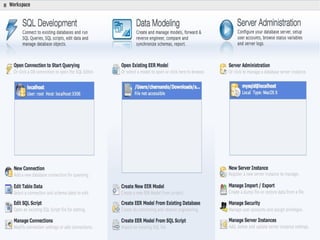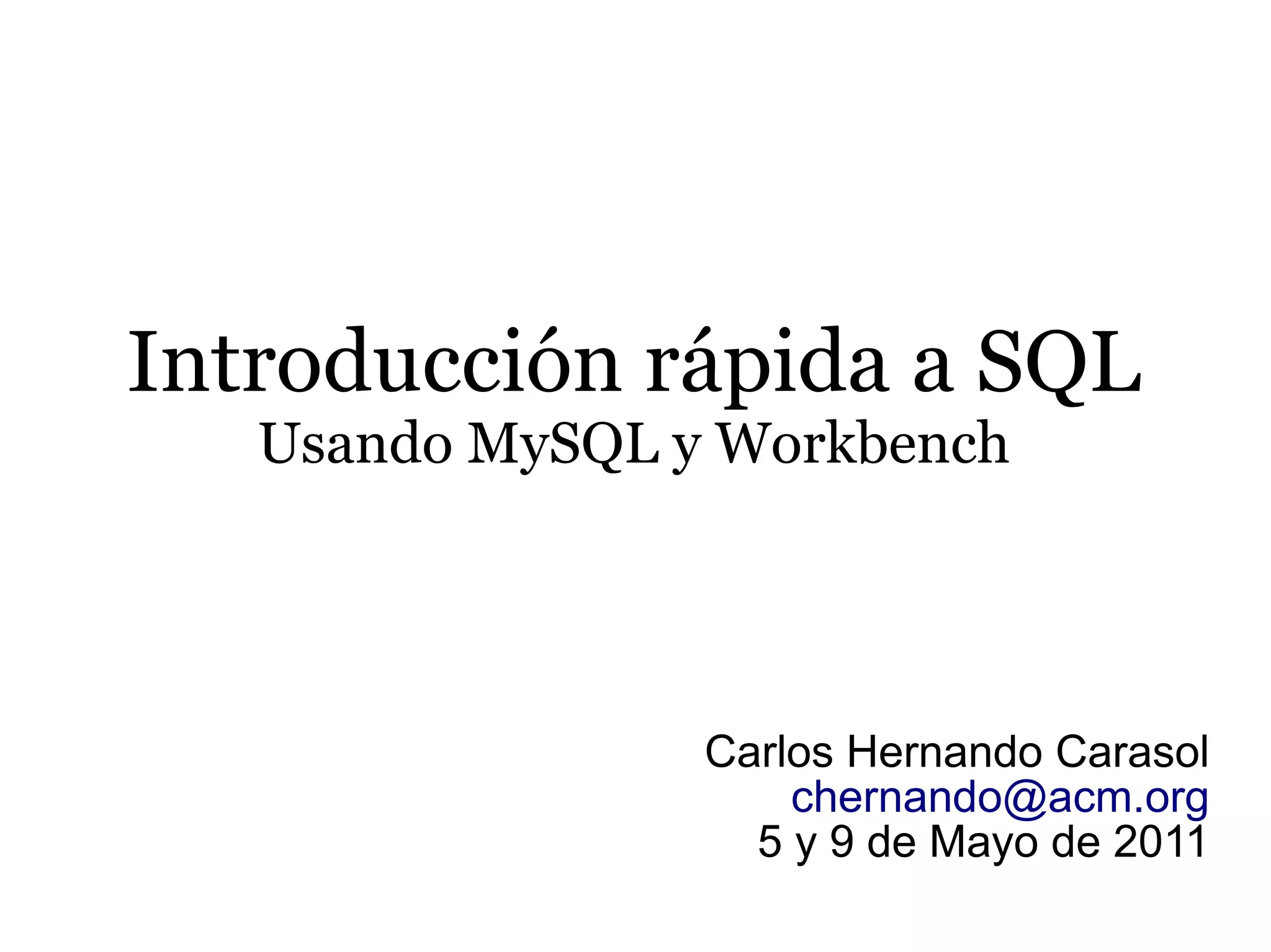 This document provides a quick introduction to SQL and using MySQL. It covers basic database and SQL concepts like entities, attributes, tables and schemas. It then explains how to install and use MySQL, including the MySQL Workbench tool. The document spends the majority of its time detailing SQL syntax for queries, data manipulation, and schema definition. It provides examples of queries, DDL and DML statements like SELECT, CREATE TABLE, INSERT, UPDATE and DELETE.