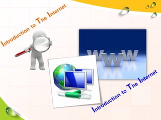 This document provides an overview of the history and evolution of the Internet. It discusses how the Internet originated from early computer networks developed by ARPA and DARPA in the 1960s-1970s to connect government and university research computers. It then covers the creation of TCP/IP in the 1970s which established the fundamental communication protocols of the Internet. The document also summarizes the commercial opening of the Internet in the 1990s and the creation of the World Wide Web in 1989-1991 by Tim Berners-Lee, which allowed for easy access to hyperlinked documents and multimedia over the Internet.