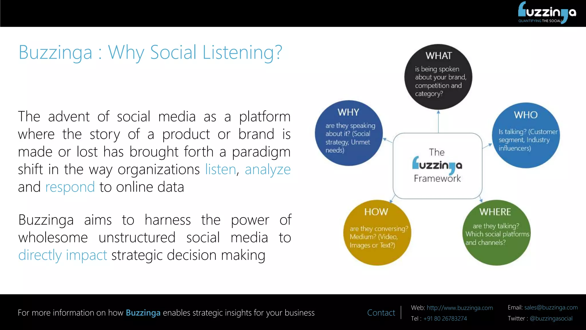 Buzzinga provides a comprehensive social media listening, analysis, and reporting framework designed to enable strategic decision-making through actionable insights. The platform aggregates data from over 10 million sources to evaluate and report on social performance, helping organizations understand their customers and optimize marketing efforts. Key features include automated sentiment analysis, content publishing, and detailed reporting capabilities.