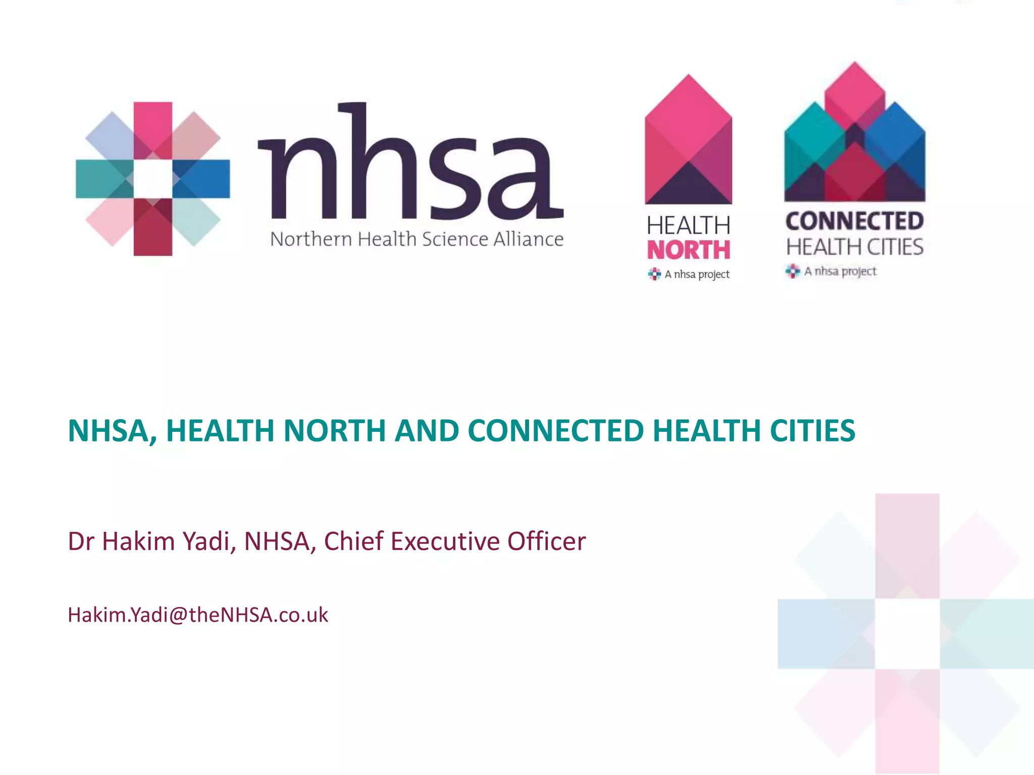 The Northern Health Science Alliance (NHSA) is a collaboration of eight universities and NHS trusts in Northern England aimed at improving health science research and services across a population of 15 million. The NHSA focuses on promoting the strengths in precision medicine, healthy aging, and population health, while fostering partnerships to secure private and public sector investments in health research. The organization also addresses health inequalities and develops new models of care through data-driven initiatives and community engagement.