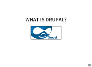 Drupal is an open source content management platform and web application framework that powers millions of websites. It allows users to organize, edit, and publish content from a central interface. Drupal is highly flexible and can be used to build many types of websites and applications. It has a large community of users and is used by many large organizations like the White House, Harvard, and Greenpeace. The presentation provides an overview of what Drupal is, how to use it, examples of companies that use it, and its future potential as a platform for new types of online experiences and integration of third party applications.